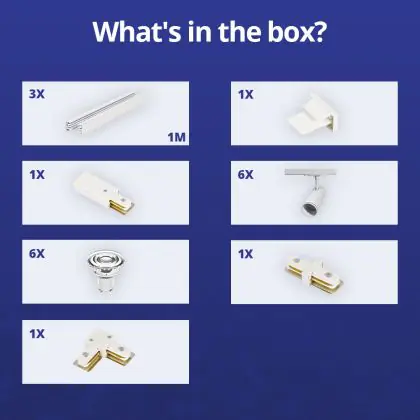 Beschrijving Complete Set 1-Fase Rail L 1 x 2 Meter Wit | incl. 6x Spot + GU10 2700K 3W Dimbaar + Eindkap, Voedingsconnector en L -Verbindingsstuk