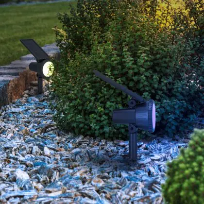 De lichtkleur van buitenverlichting bepaald in grote mate wat de sfeer is op een terrein. Ongeacht het type armatuur, ben je vrij om zelf de lichtkleur te kiezen. Het enige verschil waar je tegenaan kunt lopen is of de lichtbron is inbegrepen of dat je deze apart dient aan te schaffen. Is dit armatuur inclusief lamp? 3000K - Warm Wit + RGB. We geven je graag advies over de perfecte lichtkleur in jouw buitenomgeving: