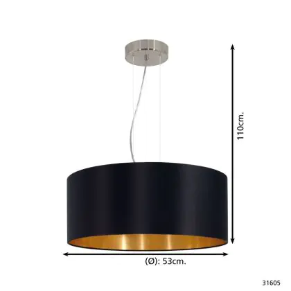 Beschrijving Eglo Pendelarmatuur Maserlo Staal Satijn Nikkel | Geschikt voor 3x E27