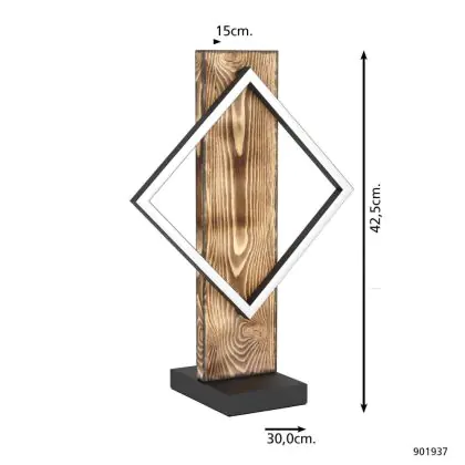 Beschrijving Eglo Tafellamp Boyal Hout Zwart, Roestig 13W 1750lm - 830 Warm Wit