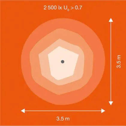 Deze LED breedstraler wordt gebruikt om (grote) oppervlaktes effectief te verlichten. Een hoge lichtopbrengst is hierbij van groot belang; hoe hoger de licht output, hoe groter de verlichte oppervlakte. Hierbij kun je denken aan het verlichten van erven, gevels, bouwplaatsen, sportcomplexen etc. De lichtopbrengst van deze LED floodlight is 117000 Lumen, met een Lumen Watt efficiëntie van lm/W. Dit houdt in dat het armatuur weinig energie verbruikt voor het licht dat deze genereert.