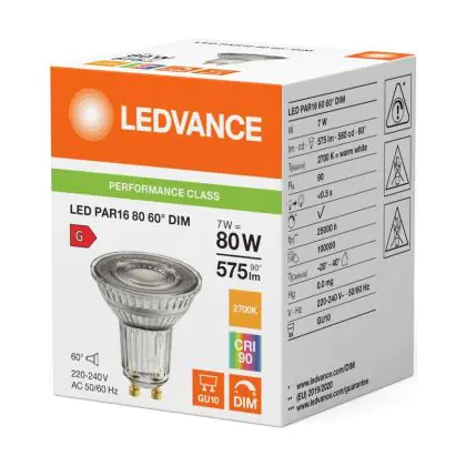 Beschrijving Ledvance LED PAR16 GU10 Reflector 7W 575lm 60D - 927 Zeer Warm Wit | Beste Kleurweergave - Dimbaar - Vervangt 80W