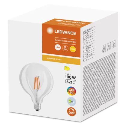 Beschrijving Ledvance Superior Classic LED E27 Globe Filament Helder 11W 1521lm - 927 Zeer Warm Wit | Beste Kleurweergave