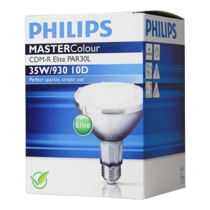 De gehele levensduur levert de Philips CDM-R Elite een uitstekend licht, met een hoge lichtopbrengst en perefect lumenbehoud. De Philips CDM-R Elite 35W 930 E27 PAR30L 30D (MASTERColour) gasontladingslampen hebben een E27 lampvoet. Dit is het beste alternatief voor kwartslampen. Ze hebben een zeer hoge lichtopbrengst en hebben een gemiddelde levensduur van 15000 uur. Ze zijn zeer efficiënt en door de lange levensduur verlaagt u uw vervangingskosten.