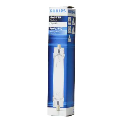 De Philips CDM-TD 70W 942 uit de MASTERColour serie van Philips is een hogedruk gasontladingslamp met een tweekneeps lampvoet. Deze Philips CDM-TD 70W 942 ligt altijd op voorraad bij Lampdirect. Bovendien ontvangt u bij aanschaf van grotere aantallen extra staffelkorting (zie hierboven). Hierdoor profiteert u niet alleen van een razendsnelle levering, maar bent u ook nog eens goedkoper uit dan bij uw huidige leverancier.
