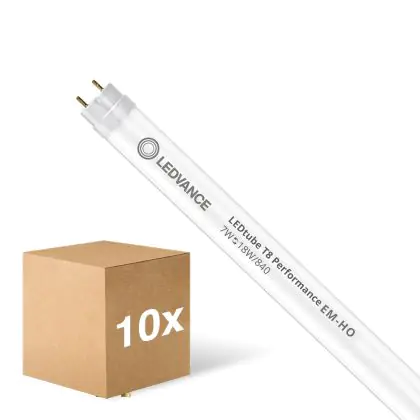 Beschrijving Voordeelpak 10x Ledvance LED Buis T8 Performance (EM/Mains) High Output 7W 1100lm - 840 Koel Wit | 60cm - Vervangt 18W
